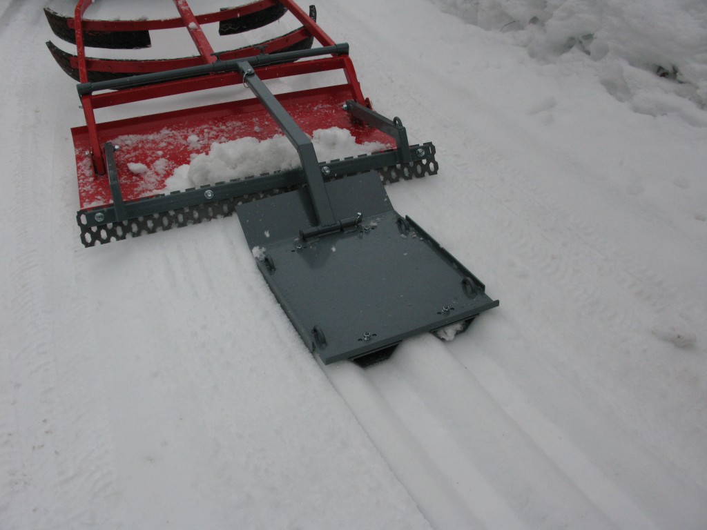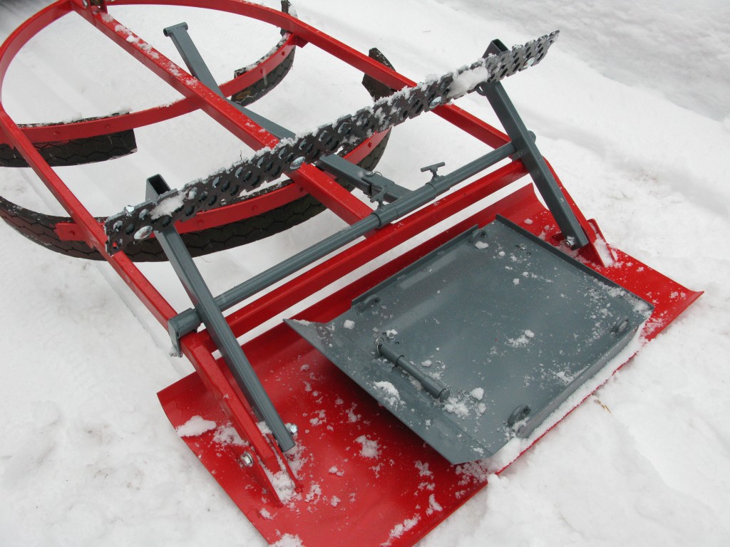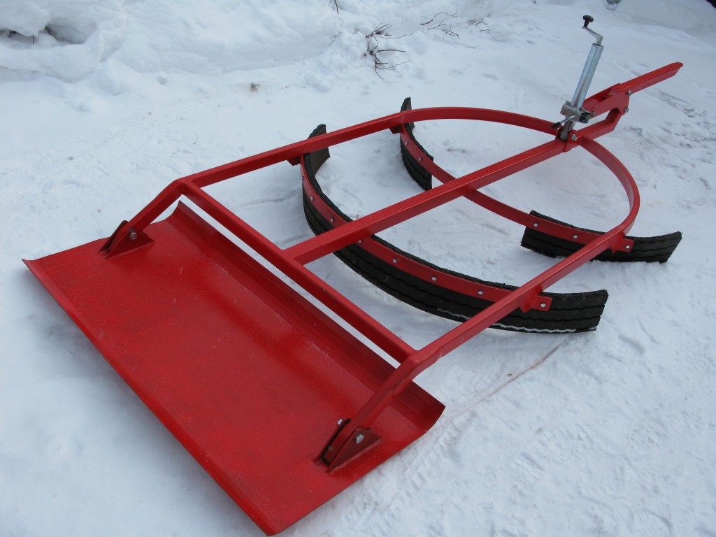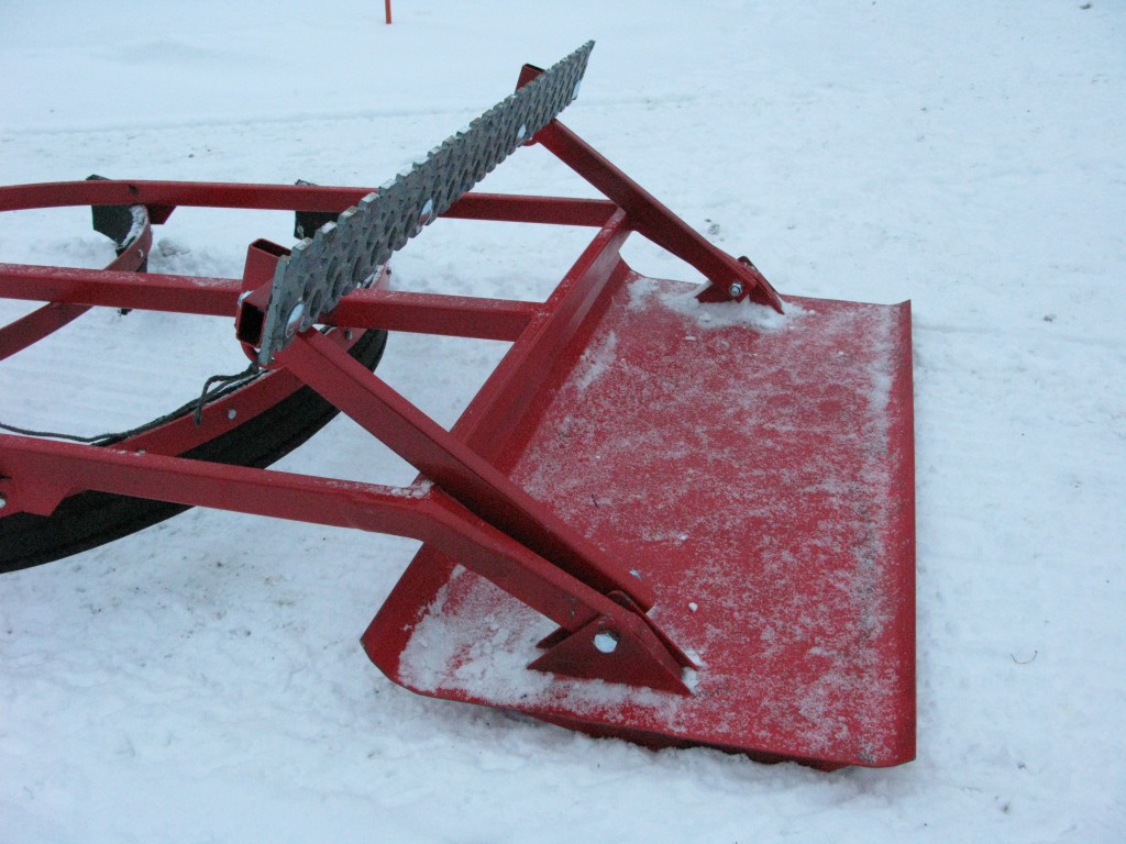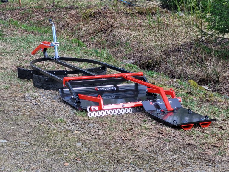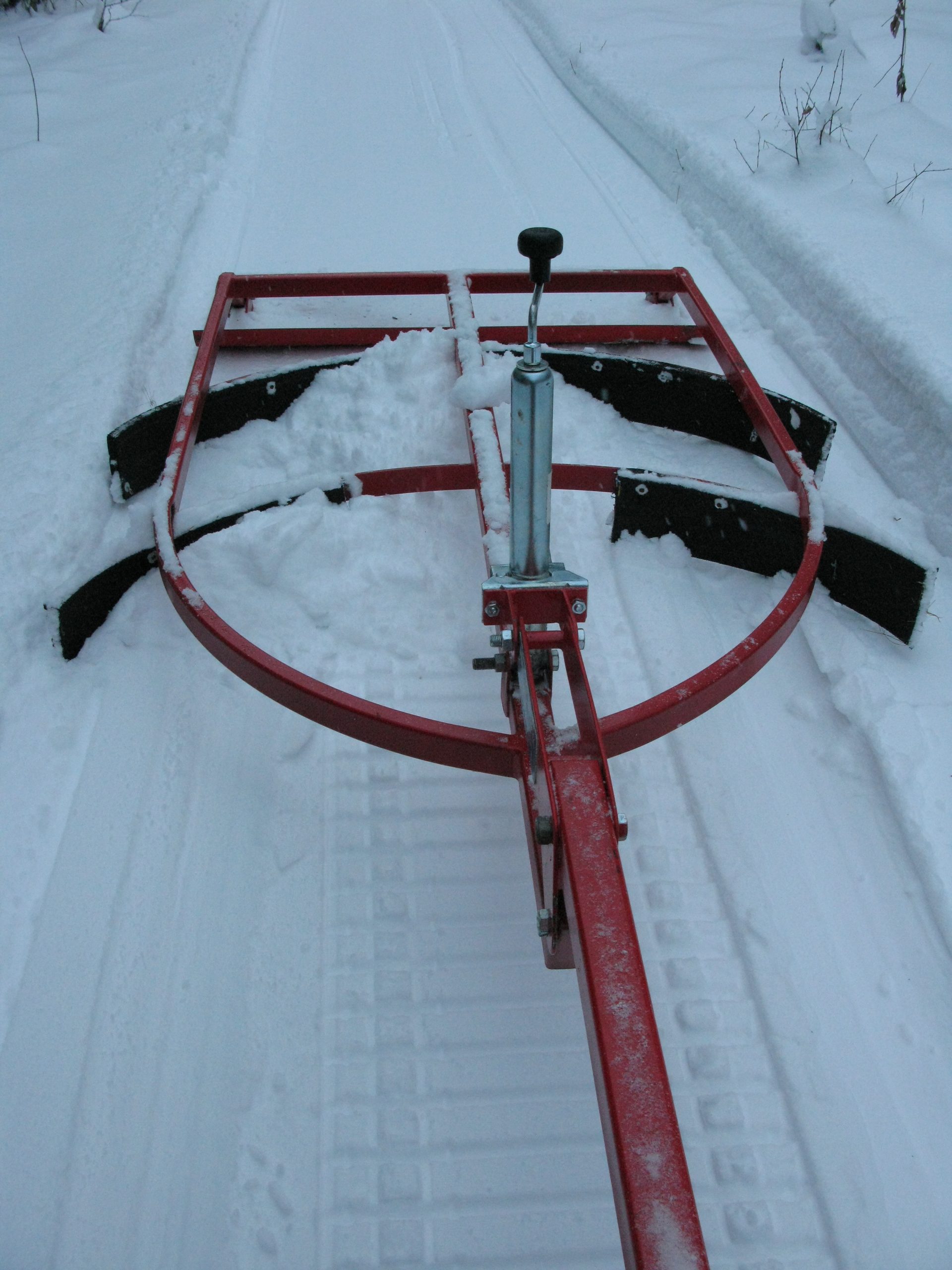 Lisävarusteina latuhöylä ja karhennusterä. Latuhöylä sivuttaissäädettävissä. Karhennusterällä voidaan karhentaa esimerkiksi jäätynyttä koiravaljakkoreittiä.